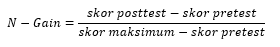 Data keefektifan diperoleh melalui hasil pretest dan posttest siswa setelah dilakukan uji coba produk. Data keefektifan dihitung dengan rumus N-Gain berikut [15]: