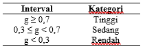 Kategori N-Gain dapat dilihat pada tabel 2: