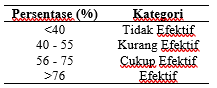 Adapun kategorisasi perolehan N-Gain Score dalam bentuk persen (%) menurut Arikunto adalah sebagai berikut.