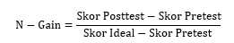 Analisis keefektifan diperoleh dari nilai tes hasil belajar siswa setelah menggunakan Big Book. Hasil pretest dan posttest akan diuji N-Gain untuk mengetahui keefektifan Big Book. rumus untuk menghitung N-Gain adalah sesuai persamaan 5.