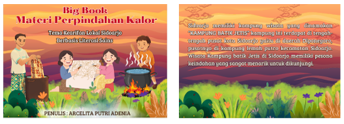 Pendidikan berbasis kearifan lokal mengajarkan peserta didik untuk selalu memahami situasi nyata dalam kehidupan sehari-hari. Mengintegrasikan budaya lokal pada pembelajaran dilakukan untuk memastikan bahwa semua peserta didik mendapatkan kesempatan untuk memahami dan menghargai kekayaan budaya mereka sendiri. Memasukkan kearifan lokal ke dalam kegiatan pembelajaran juga dapat meningkatkan kemampuan berpikir kritis peserta didik, keterampilan berpikir sains budaya lokal, dan penguasaan konsep . Penggunaan Big Book dalam konteks sains dapat melibatkan cerita berkaitan dengan kearifan lokal yang mengandung konsep sains sederhana, seperti memasukkan materi perpindahan kalor dengan kearifan lokal Sidoarjo yaitu batik jetis. Dalam hal ini peserta didik dapat memahami konsep perpindahan kalor, mengidentifikasi jenis perpindahan kalor, serta dapat menerapkan konsep perpindahan kalor dalam kehidupan sehari-hari. Melalui pemahaman mendalam tentang konsep perpindahan kalor pada proses pembuatan batik jetis, peserta didik tidak hanya mampu menjelaskan fenomena alam sehari-hari, tetapi juga mengembangkan kemampuan berfikir kritis dan analitis. Pembelajaran literasi sains tidak hanya fokus pada teori saja, tetapi juga eksperimen yang memungkinkan peserta didik mengalami langsung proses ilmiah. Hal ini penting untuk meningkatkan sikap ilmiah peserta didik dan kemampuan mereka dalam menerapkan pengetahuan perpindahan kalor dalam situasi nyata .