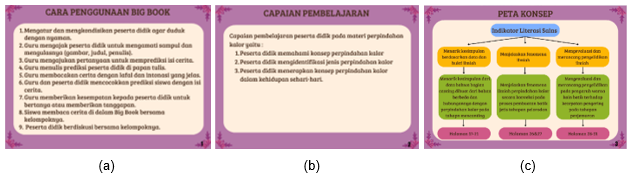 Figure 8. Gambar 3. (a) Cara Penggunaan Big Book, (b) Capaian Pembelajaran, (c) Indikator Literasi Sains