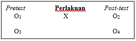 Penelitian ini menggunakan penelitian kuantitatif dengan model penelitiannya adalah Quasi Experimental Design yang penggunakan desain penelitian yaitu Non-Equivalent Control Group Design. Dalam rancangan ini, subjek penelitian tidak dipilih secara acak atau random untuk dilibatkan dalam kelas eksperimen dan kelas kontrol [16]. Terdapat dua subjek dimana keduanya memperoleh test pre-test dan post-test. Susunan pola penelitian dapat dilihat pada Gambar 1 [17].