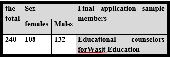b) Sample of the final application:The final application sample included (240Two male and one female mentor were selected using a stratified random method and distributed across the Wasit Education Directorate at a rate of (23% of the original research population, and Table (3) illustrates this.