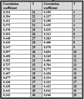 a- The relationship of the paragraph to the overall score (internal consistency):The researchers used Pearson's correlation coefficient to find the relationship between the score of each item and the total score in the table (5This shows that.