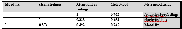 Figure 8. T able( 8 ) : A matrix of correlation coefficients between meta-mood domains, both with each other and with the overall score.