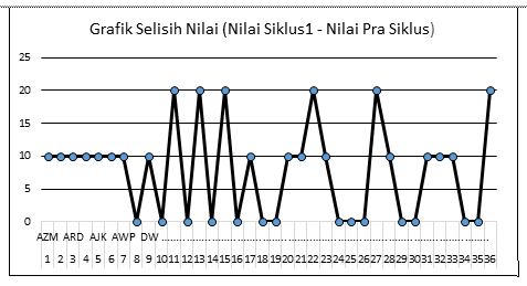 Figure 5. Gambar 4. Grafik Selisih Nilai (Nilai Siklus1 - Nilai Pra Siklus)