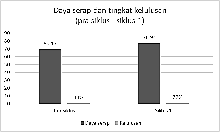 Figure 3. Gambar 2. Grafik Perbandingan Daya Serap Kelas dan Tingkat Kelulusan Pra Siklus dan Siklus 1