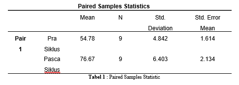 Hasil yang didapat oleh peneliti pasca siklus ini sesuai dengan hipotesa peneliti sebelumnya yaitu dapat meningkatkan hasil belajar berupa peningkatan nilai rata rata yang sudah melebihi target minimal, adapun perinciannya adalah nilai rata rata peserta didik yaitu 77,64 hal ini merupakan peningkatan yang melebihi target minilmal tingkat berikutnya yaitu 75 setelah selesai pembelajaran peneliti memberikan lembar kuesioner kepada peserta didik untuk memberikan tanggapan dan penilaian mereka terhadap metode PIT