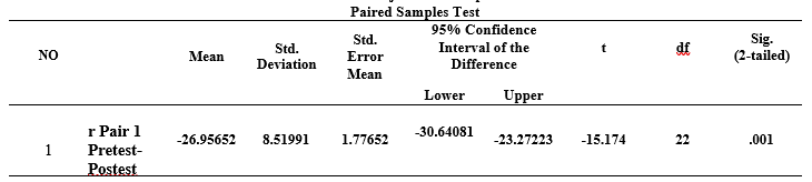 Berikut hasil uji hipotesis pretest posttest dengan menggunakan uji paired sample t-test sebagai berikut: