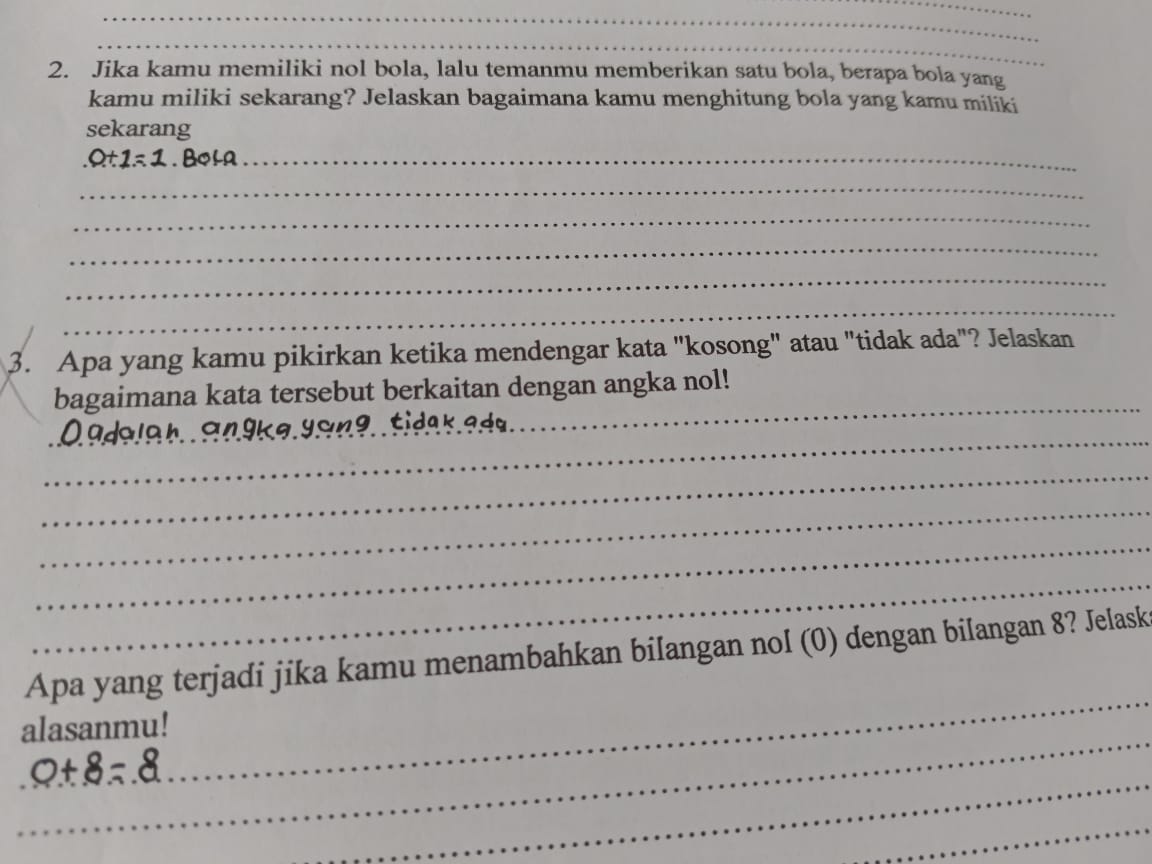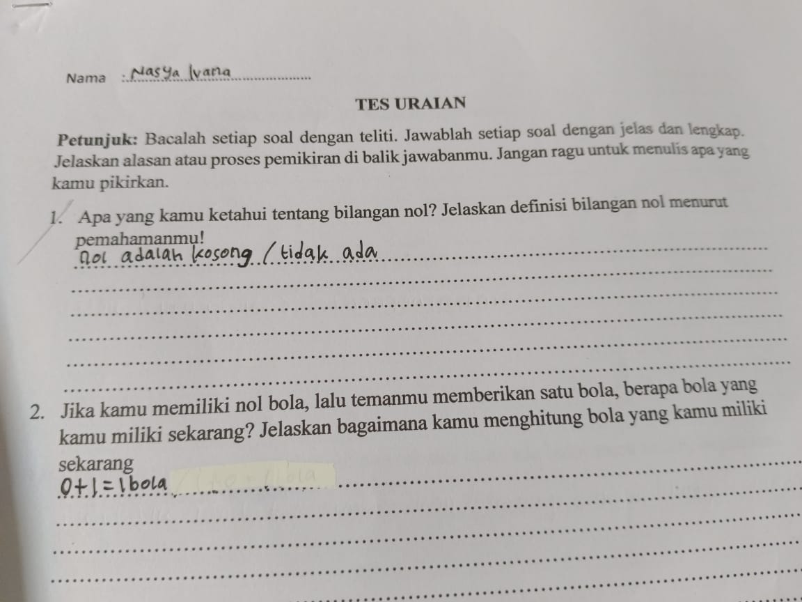 P: Coba kamu jelaskan apa itu bilangan nol?
